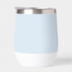 This thermal wine tumbler features a delicate palm tree illustration with the couple's names and wedding date in clean spaced lettering on a soft powder blue background — perfect for beach weddings, destination weddings, or anniversary party with a coastal vibe. A simple, elegant favor that doubles as a keepsake. Fully customizable with your names and date.