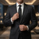 Minimalist Carbon Black Micro-Grid Geometric Krawatte