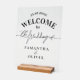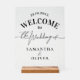 A sleek and sophisticated acrylic welcome sign featuring elegant handwritten typography. Designed with minimalist charm, it adds a refined and modern touch to weddings, events, or home décor. Its transparent acrylic surface highlights simplicity while maintaining a stylish, contemporary feel, making it perfect for greeting guests with understated elegance.