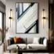 Transform your space with this architectural abstract art. Diagonal lines in white, grey, and navy blue create a clean, modern composition. Ideal for corporate decor and minimalist environments. Design that conveys order and visual sophistication.