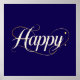 A sleek and elegant "Happy" design featuring ivory lettering accented by thin, sophisticated gold swirls and dots. This minimalist yet classy artwork is perfect for a refined and timeless aesthetic