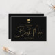 The distinguished silhouette of a gentleman, adorned with a top hat, mustache, and bow tie, graces the front of the card, exuding timeless elegance. The contrast between black and gold creates a striking visual effect that reflects the grandeur of the occasion.