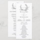 Minimalist black and white floral line art wedding program with elegant botanical illustration. Editable via Template Objects in the Zazzle editor.
