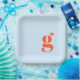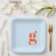 Minimalist Monogrammed Initial Retro Blue Orange Pappteller