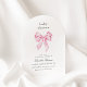 Celebrate the upcoming arrival of a sweet baby girl with this timeless and elegant baby shower invitation. Featuring a pink bow and minimal serif typography, this design blends classic charm with modern minimalism. The clean white background allows the delicate details to shine, creating a refined look that’s perfect for a traditional, chic, or feminine baby shower theme.