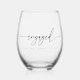Minimalist Script "Engaged" Custom Names Stemless Wine Glass. Personalize this simplistic and modern wine glass with your names, and engagement date underneath "engaged" in elegant script lettering.