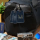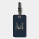 Minimalist Script Navy Blue Metallic Gold Monogram Luggage Tag