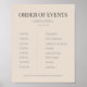 A refined and modern wedding order of events sign featuring clean minimalist typography and soft neutral tones. Designed with generous white space and a calm, elegant layout, this sign guides guests through the schedule of the day in a clear, stylish way.