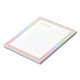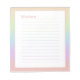 Add a touch of whimsy and organization to your daily routine with our Custom Rainbow Notepad. This delightful notepad features a stunning gradient border transitioning from warm peaches to cool blues and purples, evoking a cheerful and dreamy atmosphere. At the top, you'll find a clean, minimalistic typography area that says "Notes," accompanied by multiple horizontal lines for your lists, thoughts, or reminders. This is not just a standard notepad; it's a blank canvas waiting for your creative touch! Make it truly special by customizing it with a personalized photo, a unique birthday message, or a special text of your choice, transforming it into a one-of-a-kind keepsake. It's the perfect size for desk organization and ideal for gifting on birthdays or to loved ones who appreciate custom, functional items. Crafted with high-quality paper and a practical glued top, this notepad is designed to be both beautiful and durable. Express yourself and create something memorable with this unique, personalized stationery.