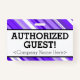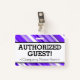 Dieses einfache Abzeichen-Design beinhaltet die Meldung "AUTHORIZED GUEST!", einen benutzerdefinierbaren Firmennamen oder eine andere benutzerdefinierte Nachricht. Ein solches Abzeichen könnte dazu verwendet werden, um zu identifizieren, ob jemand am Arbeitsplatz oder im Unternehmen ein autorisierter Gast/Besucher ist. [~Z0000307]