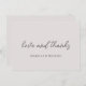 Maßgeschneiderte Hochzeit Dankeschön Karte. Mit Liebe und Dank in Script in grauem Schriftart auf beige Hintergrund. Mit einer anpassbaren Nachricht auf der Rückseite.