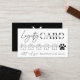 Minimalistische Hundehüttenlizionenkarte mit minimalistischem Schwarz-Weiß-Hintergrund und modernen Script- und Serif-Schriftart. Diese berufliche Begleiter-Shop oder Salon-Lochkarte enthält 6 paw-förmige Briefmarke-Slots oder Sie können mehr hinzufügen, wenn Sie möchten. Legen Sie Ihr Logo auf die Rückseite, und voila, haben Sie Ihre eigenen personalisierten Cat & Hunde Salon Belohnung Briefmarke Karten für Ihr Haustier Boutique.