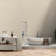 Tapete mit schälen und kleben mit minimalistisch beigefarbenem Gipsmuster.