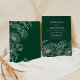 Wir stellen Ihnen unsere schöne minimalistische Boho Hochzeitseinladung vor! Dieses Design besticht durch Vintage botanische Blumenzeilenkunst und moderne Schriften, die mit stilvoller Kalligraphie vermischt werden. Das Farbschema ist trendig smaragdgrün und weiß. Diese Einladung ist ideal für Paare, die eine moderne Drehung im klassischen Stil suchen.