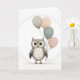 Boho Stil minimalistische Kunstwerke einer Eule mit Ballons. Blank Grußkarte zum Geburtstag, Jubiläum, neues Baby, danke, etc.