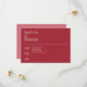 Erzählen Sie Ihren besonderen Tag mit unserem Minimalisten Save the Date, das auf unsere minimalistische Rote Hochzeitssuite abgestimmt ist. Diese Karte mit einer warmen Rot-Farbe, die die Freude und Spannung Ihrer bevorstehenden Feier einfängt. Der Text befindet sich in einem leicht lesbaren Schriftart, sodass Ihre Botschaft klar und stilvoll ist. Mit durchdacht arrangierter Typografie verbindet dies Save the Date Schönheit und Einfachheit und schafft so den perfekten Rahmen für Ihre Hochzeit. Ideal für Paare, die modernes, schlichtes Design schätzen.