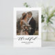 Feiern Sie Ihre Liebe mit unseren eleganten Hochzeitskarten, die das Wort "dankbar" in einem stilvollen, modernen Script-Schriftart enthalten. Personalisieren Sie mit Ihren Namen und Hochzeitsdatum, und zeigen Sie ein gepflegtes Foto des glücklichen Paares an der Vorderseite. Der Rücken bietet ein zusätzliches Foto mit einer herzlichen Botschaft, um Ihre Dankbarkeit auszudrücken. Diese Karten eignen sich hervorragend, um Ihre Wertschätzung mit Freunden und der Familie zu teilen. Ideal für Paare, die dauerhafte Erinnerungen schaffen wollen!