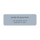 Minimalistische staubblaue Hochzeitsstimmung Rücksendeadresse. Vollständig anpassbar. Personalisieren Sie den Text einfach. Text- und Hintergrundfarben können auf Wunsch über die Schaltfläche Weiter bearbeiten geändert werden.