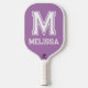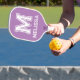 Minimalistisches Mongram Paddel mit weißem und lavender-farbenem Mongram. Dieses Pickleball-Paddel eignet sich hervorragend für ein breites Spektrum an Spielern und Erlebnissen. Dieses leichte Paddel mit handgewickeltem Griff und Fiberglas- und Polypropylen-Wabenkern verleiht dem Konkurrenten ein exzellentes Gefühl und einen großen Power. Die glatte Oberfläche und die konventionell geformte Form ermöglichen einen größeren Sweet Spot für einen solideren Kontakt.