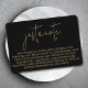 Entspannen Sie mit der Minimalistischen modernen, stilvollen Simple Just A Note Enclosure Card. Mit seinem eleganten Schwarz-Gold-Design ist diese Karte eine perfekte Mischung aus Eleganz und Funktionalität und ist somit eine wesentliche Ergänzung zu Ihrer Veranstaltungspalette. Mit seiner raffinierten, modernen Kalligraphie und seiner ausgeklügelten klassischen Typografie liefert es eine polierte Präsentation, um wichtige Details wie Hochzeitsinformationen, Brautparty-Notizen oder zusätzliche Veranstaltungsspezifikationen zu teilen. Diese Karte ist für minimalistische Hochzeiten oder stilvolle Feiern konzipiert und bietet eine vielseitige Ausstattung. Die einfache Schrift-Handschrift und die zeitgemäße bearbeitbare Vorlage machen die Anpassung mühelos und stellen sicher, dass Ihre Nachricht perfekt an das Thema Ihres Events angepasst wird. Ob als Hochzeitsdetails oder als Zusatzkarte, es fügt eine luxuriöse Touch hinzu und bewahrt dabei eine elegante, moderne Ästhetik. Die Minimalistische Modern Stylish Simple Just A Note Enclosure Card verbindet Praxisnähe mit zeitlosem Design und macht sie zu einer herausragenden Wahl für Veranstaltungen mit schwarzem oder goldenem Thema. Das elegante und dennoch schlichte Erscheinungsbild verleiht allen Schreibwaren-Suiten eine besondere Note und sorgt dafür, dass Ihre Gäste mit Stil und Eleganz die notwendigen Informationen erhalten.