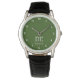Minimalistisch-moderne waldgrüne Monogramm Armbanduhr