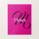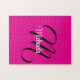 Minimalistische moderne Monogramm Anfangsname Schwarz-weiß. Personalisierbarer individuelle Name mit einem kursiven Initial hinter einer heißen rosa Farbe.