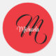 Minimalistisch moderner Monogramm Anfangsname rot Runder Aufkleber