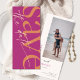 Diese 4" x 9" speichern die Dattelkarten mit einem minimalistischen Design in lebhaften orangen und cremefarbenen Buchstaben auf einem magentafarbenen Hintergrund mit Platzhaltern auf der Rückseite für die verlobten Paarnamen, das Hochzeitsdatum und die Veranstaltungsinformationen und Ihr Lieblings-Foto!