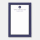 Ein mit Monogramm Notizblock mit einem beruflichen mit Monogramm Design in marineblau. Individuelle Name und Titel, Rolle oder benutzerdefinierter Text auf einem einfachen, weißen Hintergrund, gerahmt von einem marineblauen Rand. Personalisieren Sie die Eingabe mit den angegebenen Feldern, oder wenden Sie sich mit der Schaltfläche 'Nachricht' an den Designer, um Hilfe zu erhalten.