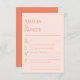 Fügen Sie Ihre Hochzeitsbriefery Suite mit unserer minimalistischen RSVP-Karte hinzu, die auf unser minimalistisch orangefarbenes Set Einladungs-Set abgestimmt ist. Die Karte ist hellorange gehalten und ermöglicht es den Gästen, ihre Antworten zu schreiben. Der Text ist in einem lebendigen orangefarbenen Schriftart, der dem Hintergrund der Einladung in diesem Set entspricht und einen kontinuierlichen Stil gewährleistet. Die durchdachte Typografie ergänzt die Ästhetik und kombiniert Einfachheit und Funktionalität. Diese RSVP-Karte ist ideal für Paare, die modernes, einheitliches Design schätzen. Sie ist die ideale Ergänzung zu Ihren Hochzeitsvorbereitungen.