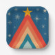 Minimalistisch Red & Blue Retro Groovy Weihnachtsb Pappteller