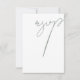 Minimalistisch Sage Green Script Typografy Wedding RSVP Card - ein schlichtes, aber elegantes Design mit moderner Schriftzeichen-Typografie in weichem Weiß-Grün, perfekt für zeitgenössische und raffinierte Hochzeitsstipps. Ideal für Paare, die ein gepflegtes und raffiniertes Aussehen suchen, das eine minimalistische Ästhetik ergänzt.