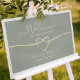 Elegantes, modernes, minimalistisch-grünes Hochzeitsplakat mit goldenem Seilherz und einfacher handgeschriebener Kalligraphie-Schrift.