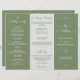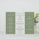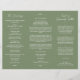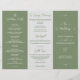 Minimalistisch Sage Green White Luxury Wedding Programm. Blaue Hochzeitsprogramme, preiswerte Hochzeitsfeier, kirchliches Hochzeitsprogramm, romantisches Kirchenhochzeitsprogramm, luxuriöse Hochzeitsfeier, sage grüne Hintergrundeinladung, dunkelgrünes goldenes Weiß, Salbei grünes Aquarellblatt, schlaues Grün dustig blau, simplistische Design-Einladung