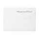 Schwarz und Weiß. Fett und auffällig. Trendy und raffiniert. Präzise weiß im auffälligen Kontrast zum fett schwarzen Skript. Das Kalligraphieskript für die Namen der Paare ist ein ausgefeiltes Rundhandskript mit geflochtenen Strichen und stark geblüht Hauptstadt-Buchstaben.
