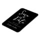 Minimalistisch Schwarz und Weiß Save the Date mit handgeschriebenem Schriftart auf einem Magneten, damit Ihre Gäste Save the Date an Ihre Hochzeit denken können.