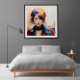 Eine minimale atemberaubende Aquarell-Illustration einer wunderschönen jungen Frau in einer futuristischen animierten Welt.