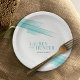 Minimalistische Aqua-Blau-Farbtinte strickt Hochzeitspapier-Teller. Weitere passende Elemente und Farboptionen sind verfügbar. © Original ink Pinselstrich Kunst und Design von Sarah Trett für www.mylittleedenweddings.com auf Zazzle.