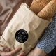 Minimalistische Brotmarken in modernem Schwarzweiß-Design mit elegantem Kalligraphie-Schriftart, Platz für Ihren Firmennamen, Ihre Website und Ihre Zutaten. Verwenden Sie diesen runden Bäckaufkleber, um Markenbezeichnungen für Lebensmittelzutaten zu erstellen, die Aufkleber für Sourdough Broad, Rye Bread, Wheat Bread und vieles mehr enthalten.