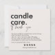 Geben Sie Ihren Kunden eine polierte und berufliche Touch mit dieser minimalistischen Kerzenpflegekarte. Es ist modern und sauber gestaltet und enthält wichtige Brennanleitungen, um die Kerzen sicher und richtig genießen zu können. Der elegante schwarze Text auf einem weichen Hintergrund verdoppelt sich ebenfalls als Dankeschön, was ihn praktisch und nachdenklich macht. Personalisieren Sie es mit Ihren Website- oder Markendetails, um das Vertrauen und die Loyalität Ihrer Kunden zu stärken. Ideal für kleine Unternehmer, Kerzenmacher und handgefertigte Shopverpackungen.