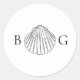 Minimalistische Clam Seashell Monogram-Gastgeschen Runder Aufkleber