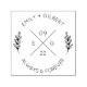 Einfache und minimalistische Hochzeitsselbstfarben-Briefmarke mit Ihren Initialen und dem Hochzeitsdatum in einer modernen serifenlosen Schrift und in einem X-gekreuzten Design arrangiert. Auf dem oberen und unteren Rand des Kreuzes befinden sich editierbare Platzhalter mit Ihren Namen und "Immer & Forever" in derselben Schrift. Es gibt symmetrische botanische Zweige Linien Kunst, um das Design weiter zu betonen. Sie können dieses Design einfach an Ihren Stil anpassen, indem Sie auf "Anpassen" klicken, um zum Design-Tool zu gelangen und Ihren eigenen Text oder Ihre eigenen Details hinzuzufügen.