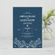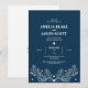Eleganter dunkelblauer Hintergrund mit Kontur-Abbildung des Blattwerks. Diese moderne und minimalistische Hochzeitseinladung ist eine ausgezeichnete Möglichkeit, Ihre Gäste einzuladen. Personalisieren Sie Ihre Veranstaltungsinformationen einfach in diese Vorlage, um eine einmalige Einladung zu erstellen.