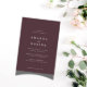 Feiern Sie Ihren besonderen Tag mit dieser minimalen und eleganten Hochzeitseinladung, die eine saubere zentrierte Anordnung mit klassischer Serifentypografie auf einem warmen lila Hintergrund bietet. Das zeitlose Design betont die Namen der Ehepaare mit feinem, ausgewogenem Text, perfekt für formale oder moderne Hochzeitsthemen. Diese Einladung ist vollständig an Ihre individuellen Details angepasst und eignet sich ideal für Paare, die eine raffinierte, typografisch-vorausschauende Ästhetik mit schlichtem Charme suchen.