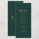 Minimalistische Emerald Green Monogram Wedding Menükarte