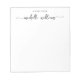 Elegantes Stylish Simple Black Girly Calligraphy Script Custom Personalisiert Notepad. Dieses stilvolle Design mit einem "HINWEIS AUS"-Text mit einem vollen Namen (oder Vorname und Nachname) in einer hübschen Hand geschrieben kursiv swash Schwanz Schriftart Kalligraphie (oder Typografie) in Schwarz-Weiß. Einfach zu anpassen. Große weibliche Geschenke zum Geburtstag, Hochzeit, Brautparty, Muttertag, Brautmädchen, süße 16 Geburtstag, Hauswärmung, Business, Schule, Abschluss, berufliche Arbeit und für alle, die Lieben sauberen minimalistischen Stil.