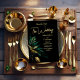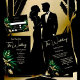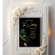 Diese Hochzeitskarte zeichnet sich durch ein elegantes, minimalistisches Design mit schwarzem Hintergrund und goldenem Text aus und schafft eine raffinierte und formale Ästhetik. Die Schrift- und Serif-Schriftart werden in einer ausgewogenen Komposition verwendet, was ihm ein modernes und dennoch klassisches Ambiente verleiht. Die untere links Ecke ist mit botanischen Illustrationen in Grün- und Goldtönen geschmückt, die dem Gesamtdesign eine Touch von Natur und Luxus verleihen. Die Gestaltung ist sauber und organisiert, um sicherzustellen, dass die wichtigen Details der Hochzeit klar kommuniziert werden. Personalisieren Sie die Karte mit Ihren Namen und Details der Hochzeit. Sie können die Karte auf Ihr mobiles Gerät oder Ihren Computer herunterladen. Die Karte wurde mithilfe von ai erstellt.
