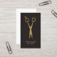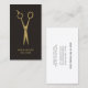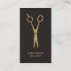 Elegante Visitenkartenvorlage mit dunklem goldenen Schere-Muster. Perfekt für Haarstylisten, Friseursalons. Minimalistisches Design. Die Miniversion dieser Karte finden Sie in unserem Shop.