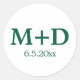 Minimalistische Grüne Paar-Initialen und Datum Runder Aufkleber