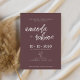 Machen Sie eine Aussage mit diesem Minimalistischen handgeschriebenen Script Wedding Invitation, mit einem eleganten modernen Kalligraphie-Schriftart auf einem dunklen Mochahintergrund. Eine perfekte Mischung aus zeitgenössischem und zeitlosem Design, diese Einladung zeigt wunderschön geschriebene Paarnamen, eine saubere Serifenanordnung und eine zarte Blumenillustrierung für eine romantische Touch. Ideal für moderne, rustikale oder boho Hochzeiten, ist diese Einladung vollständig an Ihren besonderen Tag angepasst. Ob Herbst, Winter oder Abend - dieses raffinierte Design wird Ihre Gäste beeindrucken.